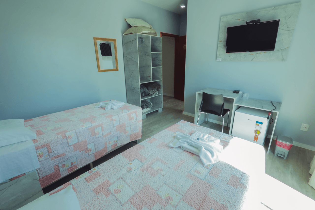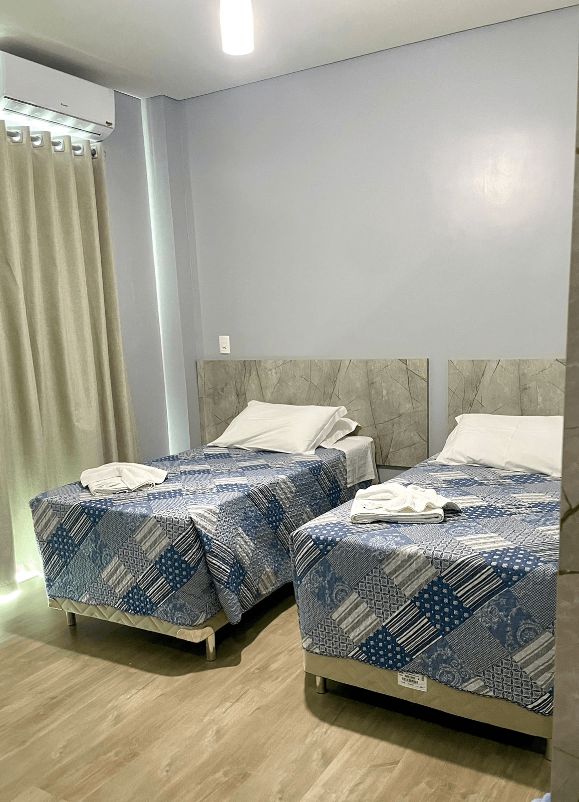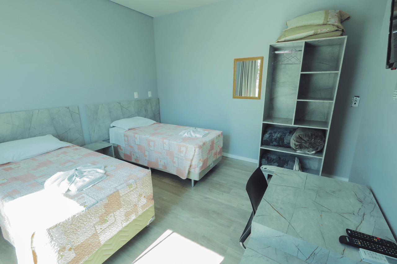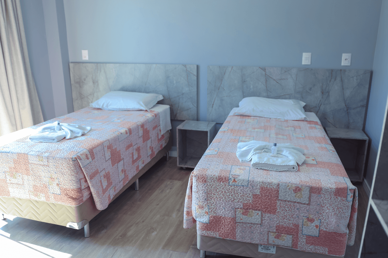 Perfeito para amigos ou colegas de viagem. Duas camas de solteiro e ambiente acolhedor.